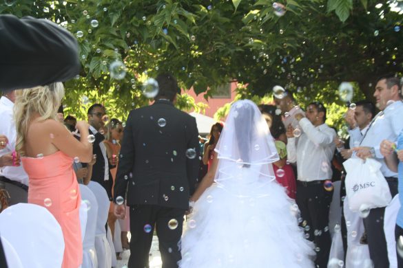 De moins en moins utilisés de nos jours, il est souvent remplacé par un lancer de pétales ou encore des bulles. Ces confettis et autres pétales, outre leur effet visuel non négligeable, ont aussi la réputation d’éloigner les « mauvais esprits » loin des jeunes époux.