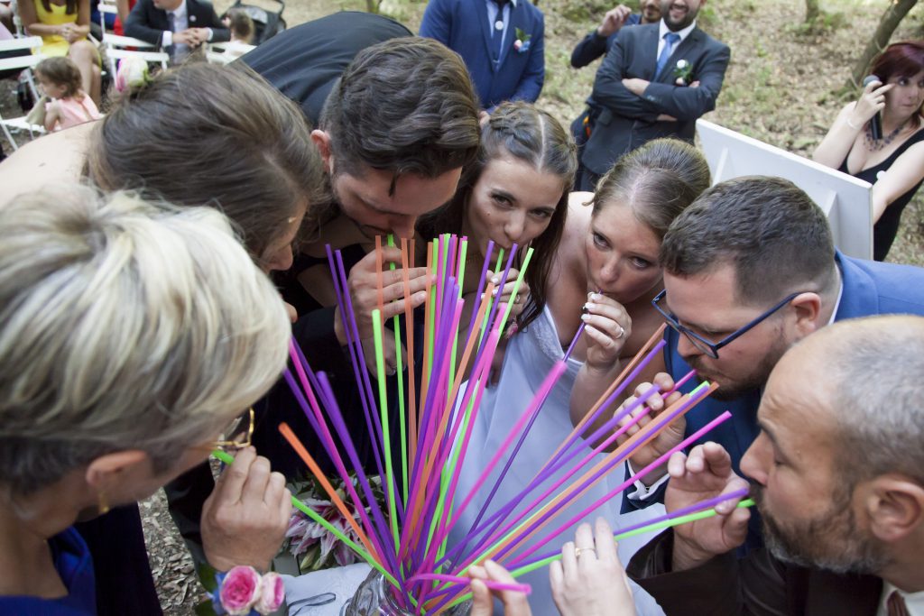 Après tout, vous avez choisi vos invités avec soin et quoi de plus naturel que de porter un toast aux mariés ? Vous pouvez simplement impliquer vos témoins dans un rituel d’engagement amical, et utiliser chaque ingrédient pour représenter cette fois les liens qui vous unissent, les différentes personnalités de votre entourage très proche. Pour un moment fun et sympathique, on prépare tous ensemble le cocktail dans une grande vasque et on plonge dedans de longues pailles colorées. Puis tout le monde se regroupant autour de vous, vous avez là une belle photo en perspective !